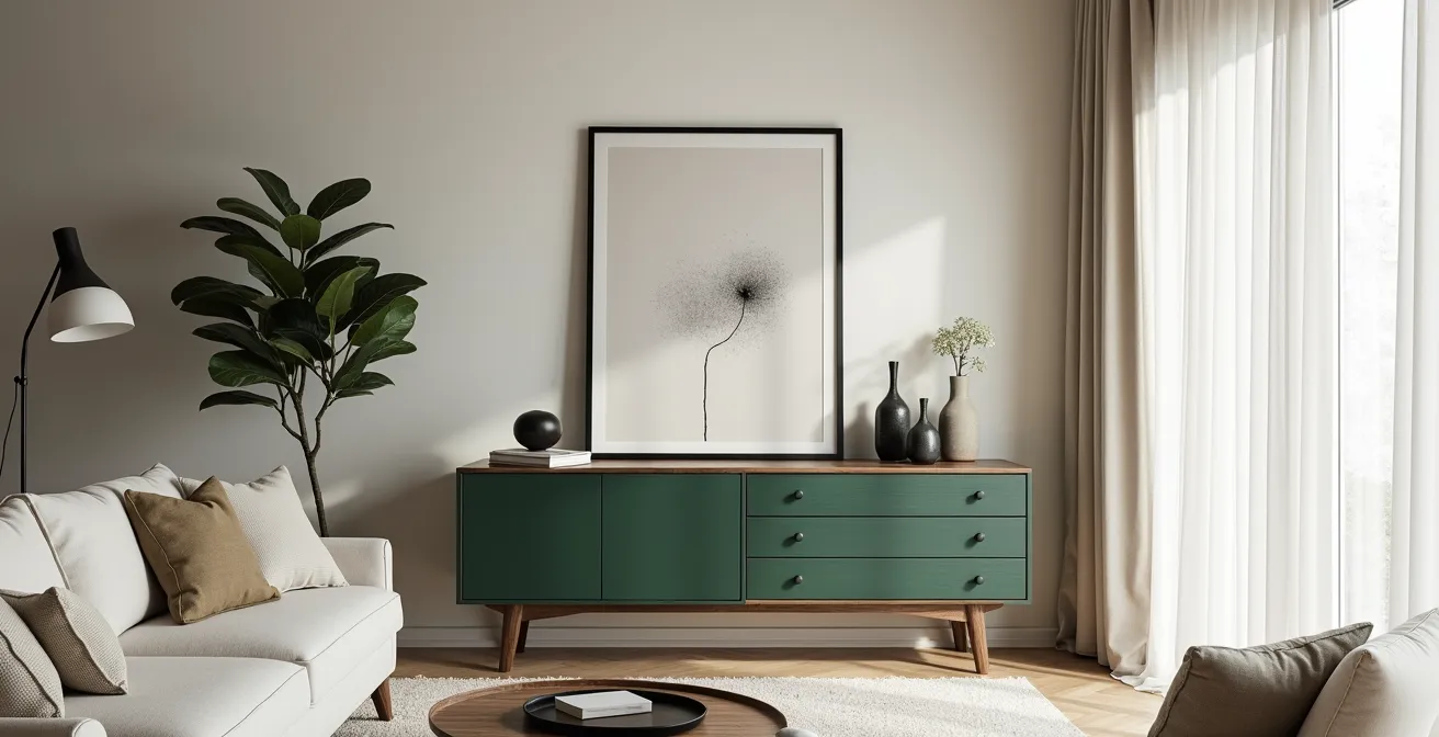 La clé est de créer un contraste radical. Placez votre meuble ancien contre un mur peint dans une couleur contemporaine et profonde, comme un vert forêt, un bleu nuit ou un terracotta. Cette toile de fond moderne va instantanément récontextualiser la commode, la transformant de « vieillerie » en « pièce de caractère ». Surmontez-la d’une grande œuvre d’art abstraite ou d’un miroir au design minimaliste pour accentuer le choc des époques. Ce contraste est le secret des magazines de décoration.