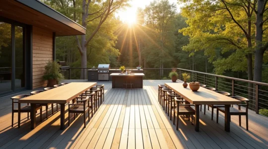 Chaque espace bénéficie d’un élément focal qui ancre visuellement l’ensemble et justifie un investissement supérieur. Pour un patio, ce peut être une table de repas en bois massif de grande qualité autour de laquelle gravitent des chaises plus simples. Dans un salon, un canapé modulaire généreux devient la pièce de référence complétée par des tables d’appoint fonctionnelles mais discrètes.
