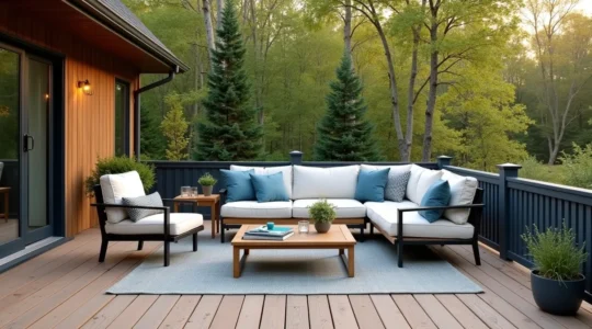 Créer un véritable salon à l’extérieur demande de porter une attention particulière à la qualité des assises. La densité de la mousse dans les coussins détermine leur durabilité et leur confort : recherchez une densité minimale de 30 kg/m³ pour un usage extérieur, garantissant que les coussins conservent leur forme saison après saison. Les mousses à drainage rapide évitent l’accumulation d’eau lors des averses soudaines typiques des étés québécois.